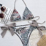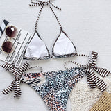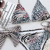 Sexy Leopard Print Bow Tie Cheeky Triangle Brazilian Two Piece Bikini Swimsuit
