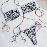 Sexy Spiral Printed Tie String Wrap Halter Brazilian Two Piece Bikini Swimsuit