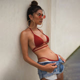 Sexy String Cheeky Tie Wrap Triangle Ribbed Brazilian Two Piece Bikini Swimsuit