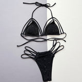 Sparkly Cutout Strappy Cheeky Slide Triangle Brazilian Two Piece Bikini Swimsuit
