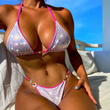 Sparkly Gingham Contrast String Triangle Brazilian Two Piece Bikini Swimsuit