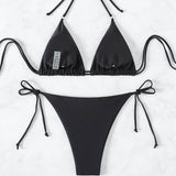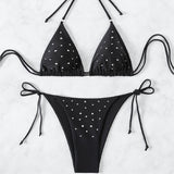 Sparkly Rhinestone Tie String Slide Triangle Brazilian Two Piece Bikini Swimsuit